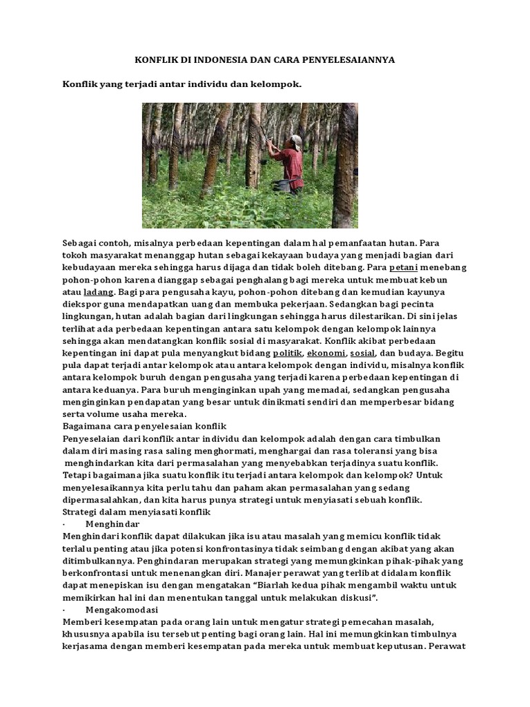 Seperti konflik antara suku dani dan damal di kwamki lama dan juga konflik berlanjut di banti dan kimbeli di tembagapura dekat pt fi mengeksploitasi emas tembaga dan mineral ikutan lainnya. Alasan yang saya ketahui saat ini adalah karena konflik sara. Contoh dan cara penyelesaian konflik sosial di indonesia. Konflik bisa terjadi akibat adanya perbedaan pandangan antara dua atau lebih kelompok masyarakat di suatu wilayah. Menurut nardjana 1994 mendefinisikan konflik sebagai akibat situasi dimana keinginan atau kehendak yang berbeda atau berlawanan antara satu dengan yang lain sehingga salah satu atau keduanya saling terganggu. Dalam konflik ini dikenal sebagai konflik sampit yang banyak menelan kerugian dan menyebabkan terpecahnya masyarakat dayak dan madura sampai saat ini.