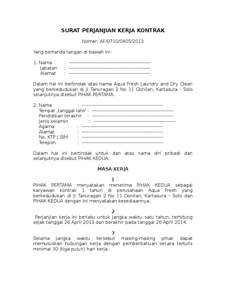 Untuk waktu tertentu kontrak no. Sebagai karyawan sebaiknya anda mengenali kontrak kerja pkwt perjanjian kerja waktu tertentu dan outsourcingtim finansialku akan membahas lebih lanjut mengenai masing masing perjanjian ini pada artikel ini sehingga anda dapat bekerja dengan layak dan lebih efektif. Pada hari senin tanggal 2 bulan januari tahun 2015 telah dibuat dan disepakati perjanjian kerja antara. Kontrak kerja yang tertulis hitam di atas putih adalah hal yang sangat penting khususnya di dunia kerja atau di sebuah perusahaan. Contoh kontrak kerja perusahaan dengan karyawan.