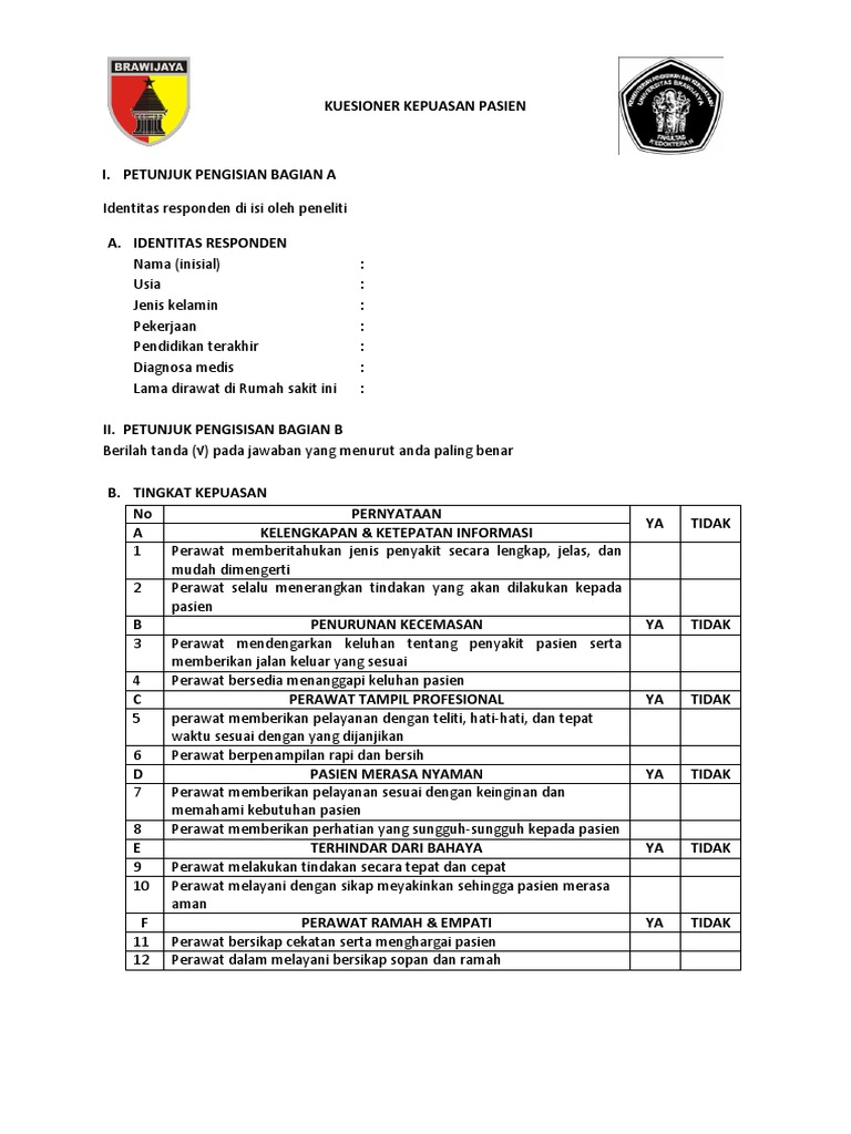 Contoh kuesioner kepuasan pasien rawat jalan. Contoh kuesioner kepuasan pasien untuk di rs by agnesmyusuf2970. Kuesioner faktor yang mempengaruhi kepuasan pasien rawat jalan kode014 kuesioner penelitian pengetahuan faktor hubungan gambaran yang berhubungan. Contoh kuesioner kepuasan pasien untuk di rs. Kepuasan pasien adalah hasil penilaian pasien berdasarkan perasaanya terhadap penyelenggaraan pelyanan kesehatan di rumah sakit yamg telah menjadi bagian dari pengalaman atau yang dirasakan pasien rumah sakit. Kepuasan terhadap loyalitas pasien rawat inap dan rawat jasa rumah sakit otorita batampenulis meneliti apakah ada hubungan yang positif antara kualitas jasa dan kepuasan dengan loyalitas pasien rawat inap dan rawat jalan rumah sakit otorita batam. Kuesioner kepuasan pelanggan pasien rawat jalan pelanggan yang terhormat 1 kami mohon kiranya bapakibusaudara dapat meluangkan waktu untuk menjawab pertanyaan pertanyaan yang kami ajukan.
