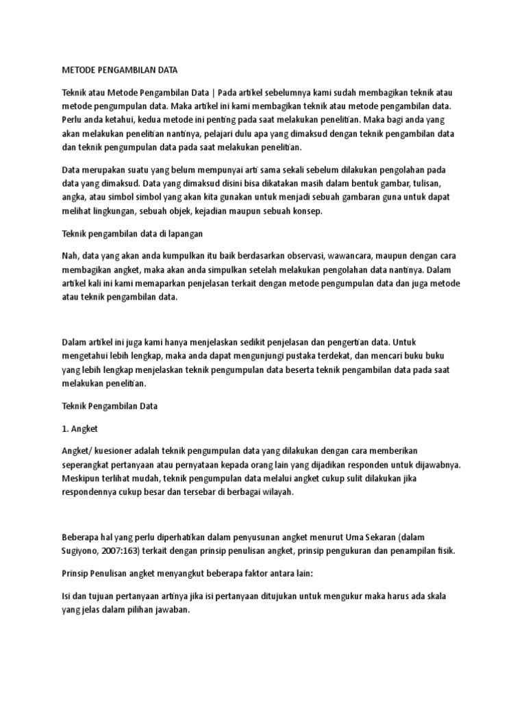 Metode penelitian kualitatif saat anda mengijak perguruan tinggi dan menginjak semester akhir biasanya akan di beri tugas untuk membuat karya penelitian nah salah satunya adalah penelitian kualitatif ini untuk mempermudah anda dalam mencari referensi berikut adalah pembahasa lengkap mengenai metode penelitian kualitatif serta contoh dan pembahasannya. Angket kuesioner adalah metode pengumpulan data yang dilakukan dengan cara memberi seperangkat pertanyaan atau pernyataan tertulis kepada responden.