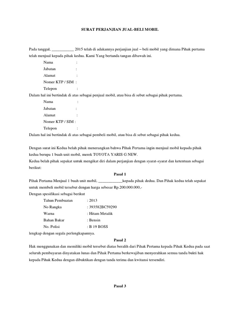 Mobil rental sendiri terbagi menjadi beberapa jenis. Surat perjanjian jual beli mobil dan truk adalah salah satu alat paling penting dalam melakukan transaksi jual beli.