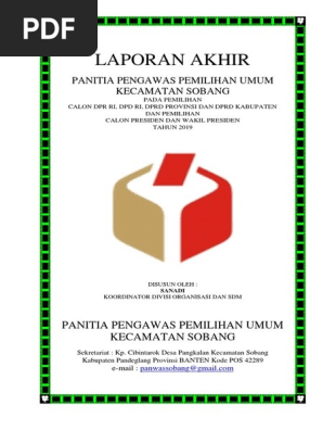 Contoh laporan akhir panwaslu kabupaten. Dedy mizwar sebagai gubernur dan wakil gubernur jawa barat periode 2013 2018. Dalam menjalankan tugasnya panwaslu kecamatan pamarayan kabupaten serang dibantu oleh sekretariat sebagai mana diatur dalam pasal 107 undang undang nomor 15 tahun 2011. Laporan kinerja 2017 menegakkan keadilan pemilu. Pada tahapan ini sampai dengan laporan akhir tahun 2013 ini dibuat masih pada fase sosialisasi caleg. Pilkada di 10 kabupatenkota peneliti utama program indonesia democ racy index. Yaitu mokhamad kodir se msi ak sebagai ketua merangkap anggota dan dua anggota lainnya drs nur muktiadi dan tasikhin spd.