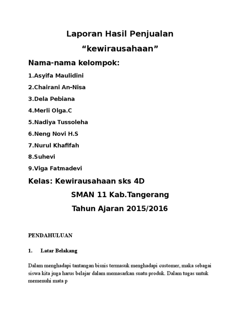 7000 modal yang keluar rp. Bang izin copas yaa gomawo nae exol btw hehe salam kenal reply delete. Unknown 24 oktober 2018 0742. Contoh laporan hasil usaha entrepreneurship penjualan sosis bakar. 4000 hand and body lotion yang terjual habis ada 35 buah x rp. Judulnya saja contoh laporan hasil penjualan yang mana laporan ini adalah tugas untuk matkul kewirausahaan.