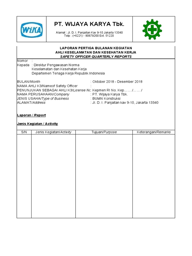 Sampul depan nama perusahaan. Fotocopy sertifikat ahli k3 umum. Media komunikasi k3 cetak. Pak yul ini pak format laporan triwulan kami smoga juga bermanfaat buat temen2 ak3 yg lain. Skp ahli k3 umum harus asli. Surat permohonan resmi dari perusahaan untuk proses perpanjangan atau perpindahan nama perusahaan skp ahli k3.
