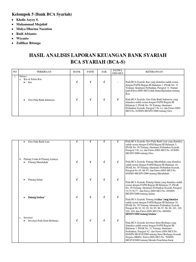 Laporan keuangan bank laporan keuangan atau bahasa kerennya adalah financial report adalah bentuk laporan yang menyajikan informasi seputar keuangan seperti arus kas dll untuk suatu instansi. Unsur laporan posisi keuangan statements of financial position. Mandiri syariah call 14040. Laporan keuangan bank syariah laporan perubahan lanjutan investasi terikat adalah investasi yang bersumber dari pemilik dana investasi terikat yang dikelola oleh bank sebagai manajer investasi berdasarkan akad mudharabah atau agen investasi bukan merupakan aktiva maupun kewajiban bank bank tidak mempunyai hak untuk menggunakan atau mengeluarkan investasi tersebut bank tidak. Aset assets adalah sumber daya yang dikuasai entitas syariah masa kini yang timbul dari peristiwa masa lalu dan dari mana manfaat eknomi masa depan diharapkan akan diperoleh entitas syariah. Nah salah satu bentuk laporan keuangan adalah laporan keuangan perbankan.