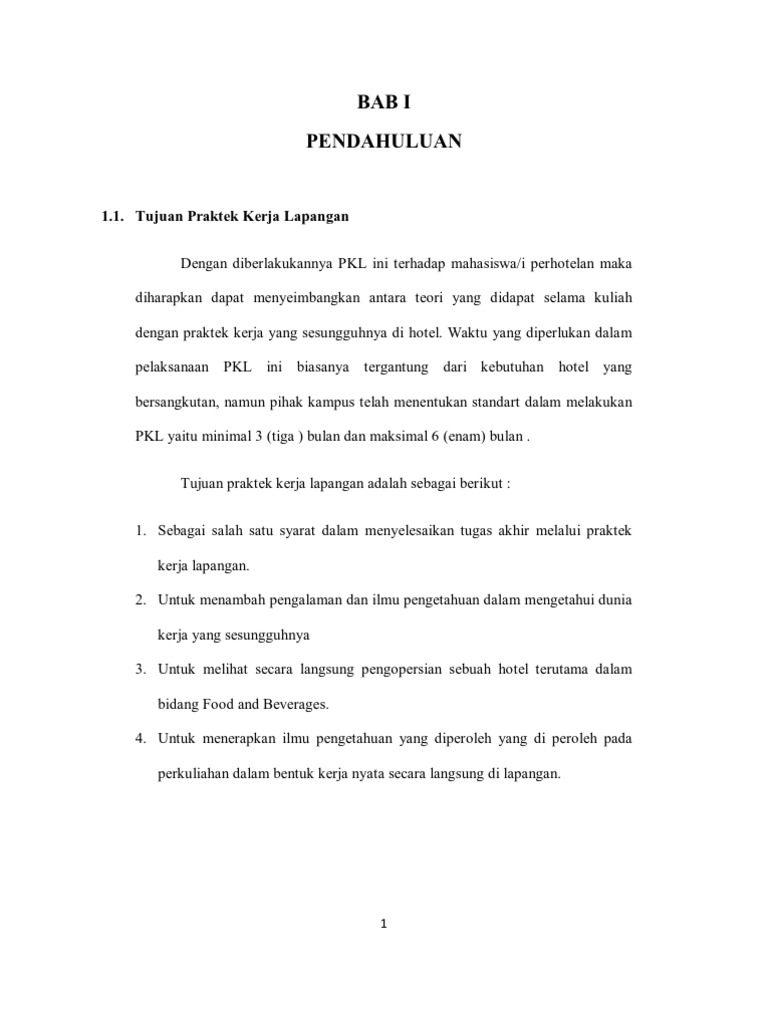 Praktek kerja lapangan atau sering disingkat prakerin dilakukan dalam rangka untuk mendekatkan kesesuaian antara mutu dan kompetensi siswapendidikan sekola menengah kejuruan atau smk dengan kebutuhan di dunia usaha dan dunia industri praktek kerja lapangan di laksanakan pada tanggal 15 oktober 2018 sampai dengan 14 januari 2019 tempat pelaksanaan prakerin di hotel berbintang atau pun badget. Pkl sehingga akan lebih mudah untuk perencanaan peningkatan di bidang sumber daya manusia sdm. Contoh laporan prakerin pkl smk yang baik dan benar setelah selesai melaksanakan pkl praktek kerja lapangan atau sama saja dengan prakerin praktek kerja industri kita pasti akan diminta mengumpulkan laporan hasil pkl. Phri berperan sebagai asosiasi yang berpartisipasi dalam perkembangan usaha perhotelan dan usaha restaurant. Pkl langsung padadunia usaha industri. Contoh laporan praktek kerja industri jurusan perhotelan kata pengantar puji dan syukur penulis ucapkan kepada tuhan yang maha esa atas berkat dan rahmat nya penulis dapat menyusun menyelesaikan laporan ini dengan baik.
