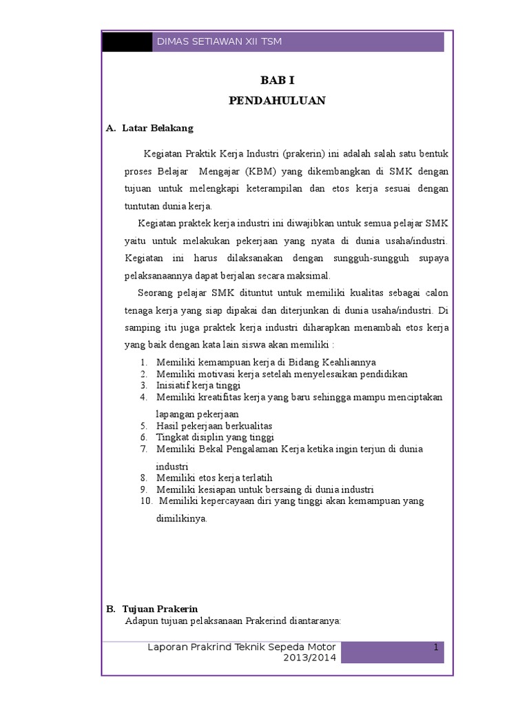 Dokumen serupa dengan laporan prakerin tsm 2. Analisis shockbreaker sepeda motor honda final diunggah oleh. Contoh laporan prakerin tsm teknik sepeda motor 2016 video lucu euro truck simulator 2. Laporan tsm tehnik sepeda motor laporan. Adapun penyusunan laporan prakerin ini di maksudkan untuk memenuhi salah satu syarat untuk mengikuti ujian nasional di smk n 2 bawang banjarnegara. Prakerin ini merupakan kurikulum sekolah menengah kejuruan yang.