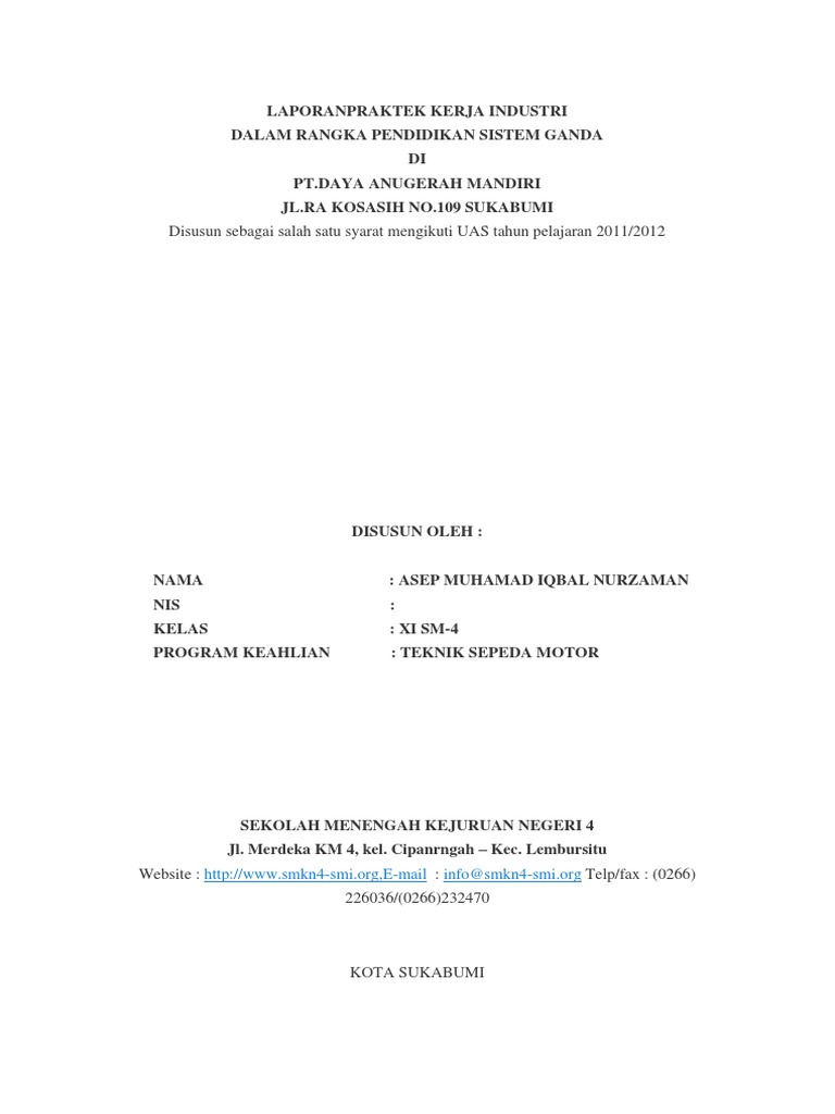 Mutiara hati karisma mu mengalakan indah nya mega from. Contoh laporan prakerin praktek kerja industri prakerin merupakan suatu pembelajaran yang ddilakukan dalam dunia pendidikan yang mempunyai sistem pendidikan ganda. Di susun oleh. Di bengkel galuh motor jingkang.