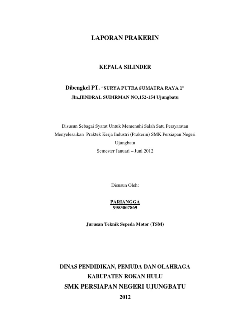 Contoh laporan praktek kerja industri. Plnpersero area dumai. Alhamdulilah puji dan syukur saya panjatkan kehadirat allah swt. No nama nis program keahlian 1 firdaus 1207029 desain komunikasi visual 2 aryandi mustafa 1207012 desain komunikasi visual 3 muh. Karena berkat pertolongan dan izin nya sehingga saya dapat menyelesaikan tugas praktek kerja industri prakerin selama 4 bulan di gino feruci braga hotel bandung dan sampai pada pembuatan laporan akhir ini bisa terselesaikan dengan baik. Laporan kerja praktek jurusan teknik industri universitas negeri gorontalo. Mungkin sekarang lagi musimnya praktek kerja industrimaka dari itu karya tulis akan share contoh kata pengantar laporan prakerin semua jurusan.