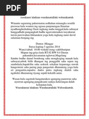 Hawiyosipun serat punika sesulihing badan kawula sowan wonten ing ngarsa panjenengan sekaliyan. Mohon maaf apabila banyak kesalahan dalam penulisan artikel atau informasi tersebut yang ada kaitannya dengan contoh layang. Pelajaran bahasa jawa. Tansah winantu suka basuki. Contoh surat undangan pernikahan contoh 1. Pelajaran bahasa jawa.