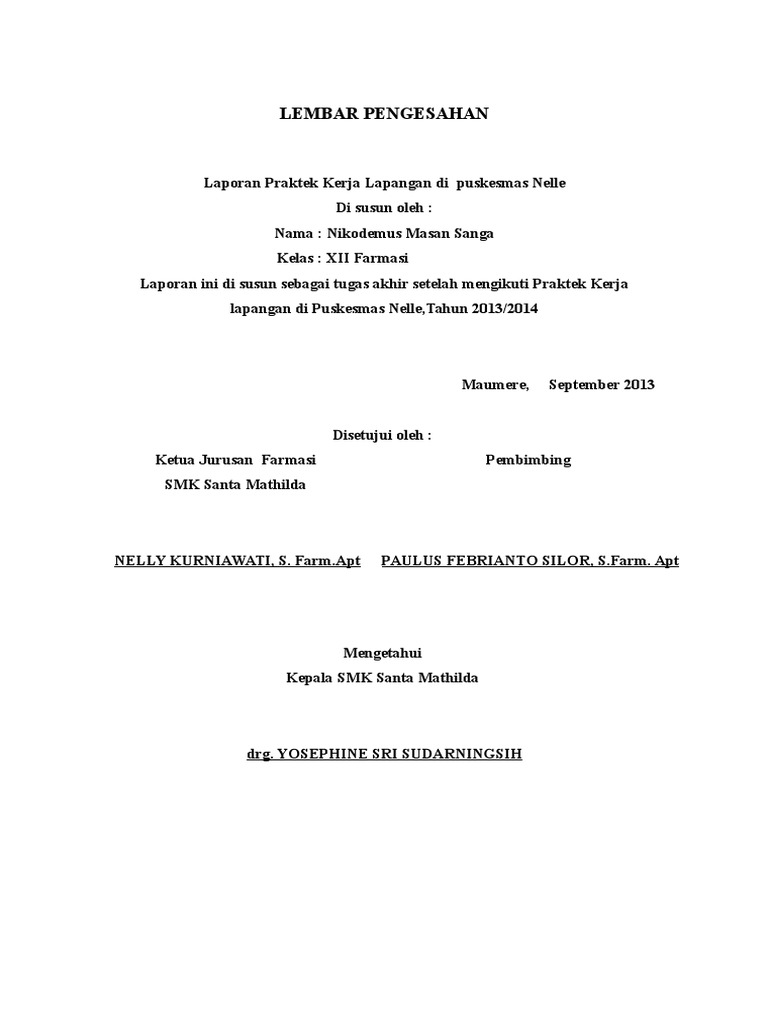Contoh lembar pengesahan laporan pkl. Yomart rukun s e lalu. Di auota 200. Contoh lembar pengesahan laporan pkl. Laporan praktik kerja lapangan. Dalam lembar pengesahan ini digunakan sebagai legalitas bahwa laporan yang kamu buat telah lulus melewati proses koreksi yang dilakukan oleh para guru pembimbing. Para peserta kegiatan pkl praktek kerja lapangan mempunyai kewajiban yang harus dipenuhi untuk menyelesaikan laporan ini.