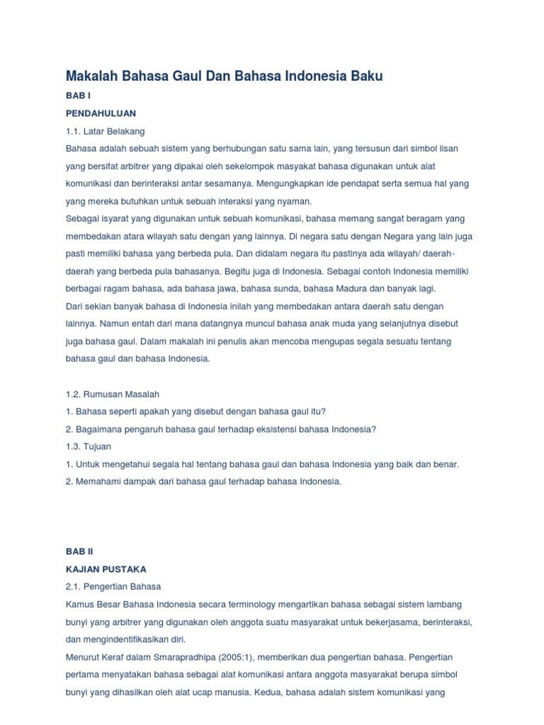Contoh makalah bahasa indonesia yang baik dan benar. Contoh makalah makalah adalah salah satu artikel utama dari blog contoh artikel ini oleh karena itu banyak artikel pada blog ini yang membahas tentang makalah baik itu contoh kata pengantar makalah contoh pendahuluan makalah sampai contoh cover makalah dan lain lain silahkan anda menuju kategori makalah dan pidato untuk kumpulan artikel tentang makalah. Oleh sebab itu sobat pembaca juga perlu untuk mengetahui bagaimana susunan makalah yang benar beserta contoh makalah. Makalah menjadi tugas dasar dari sebuah mahasiswa agar terbiasa dan tidak kaget. Contoh makalah makalah adalah salah satu artikel utama dari blog contoh artikel ini oleh karena itu banyak artikel pada blog ini yang membahas tentang makalah baik itu contoh kata pengantar makalah contoh pendahuluan makalah sampai contoh cover makalah dan lain lain silahkan anda menuju kategori makalah dan pidato untuk kumpulan artikel tentang makalah. Bisa disebabkan karena memang kurang menguasai materi yang akan ditulis. Namun agar mendapatkan gambaran yang lebih mendetail informasi yang akan disampaikan pada kesempatan ini tidak ada salahnya untuk disimak.