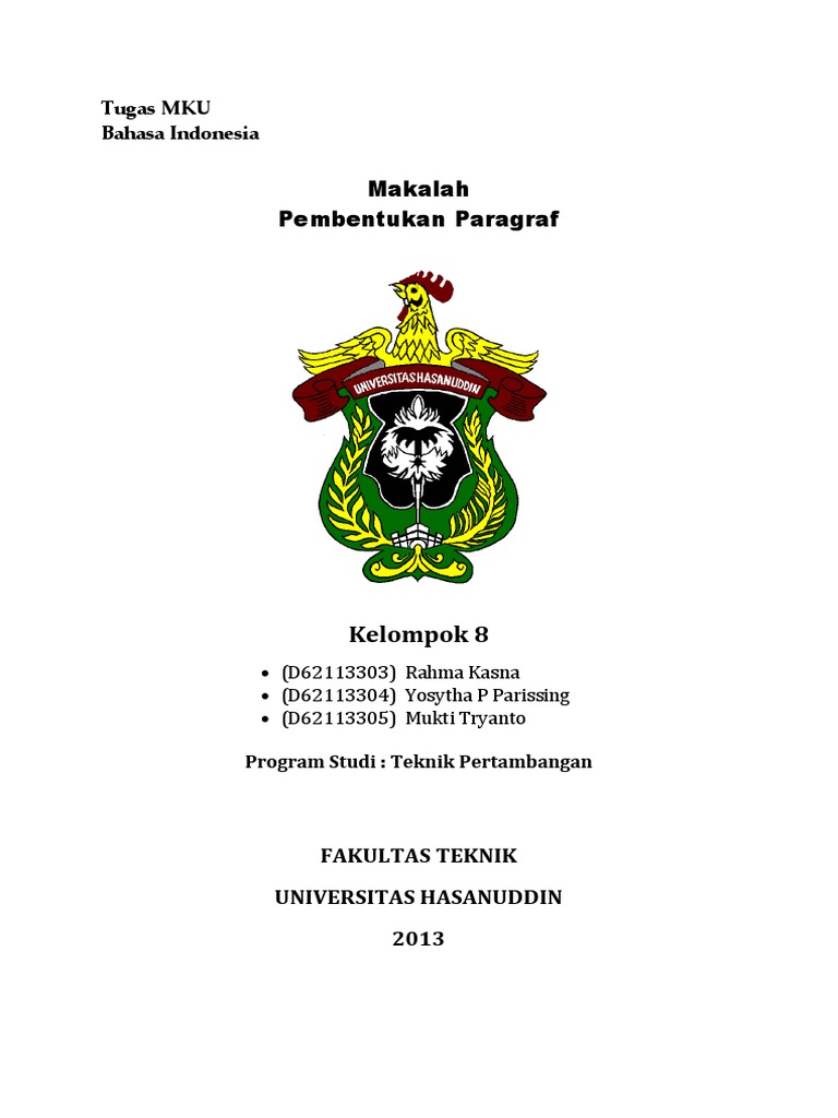 Masul hadi nim b07210025 dosen pembimbing. Dan biasanya sering diterbitkan. Menurut kbbi kamus besar bahasa indonesia makalah adalah tulisan resmi mengenai suatu pokok bahasan yang disusun untuk dibacakan di muka umum dalam suatu persidangan. Bahasa indonesia sebagai media komunikasimakalahdiajukan untuk memenuhi tugas mata kuliahbahasa indonesia olehharis maiza putra c52212099lukman chakim putra c52212106dwi apriliawati c52212115ifa al mufida c72212137m. Setidaknya anda paham sedikit mengenai bagian bagian makalah yang baik dan benar termasuk latar belakang dimana strukturnya diawali dengan kalimat atau pernyataan yang paling umum dan mengerucut ke kalimat khusus. Makalah bahasa indonesia sebenarnya sudah saya posting di artikel sebelumnya hanya saja tema dari makalah tersebut yaitu tentang pendidikan karakter silahkan baca di makalah tentang pendidikan karakter dan berbeda dengan makalah tersebut pada contoh makalah bahasa indonesia kali ini saya mengangkat tema tentang kedudukan bahasa indonesia serta peran bahasa indonesia dalam membangun bangsa.