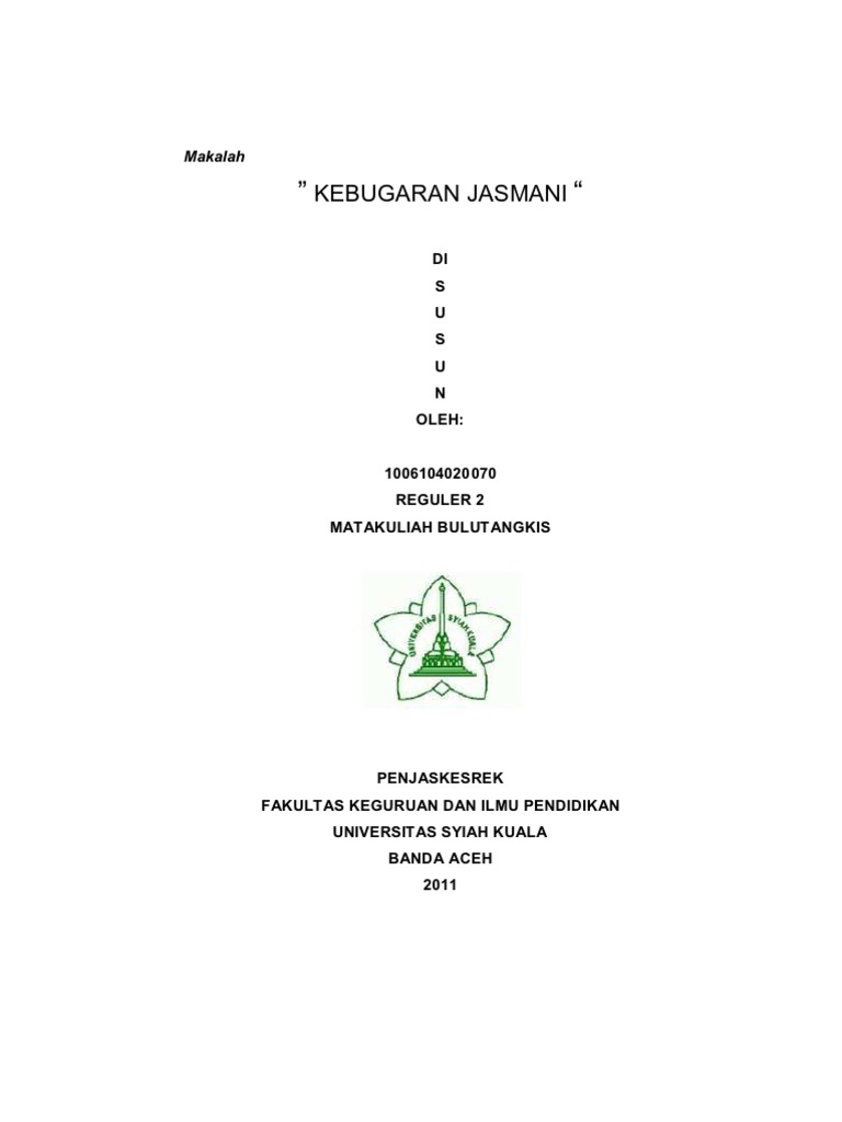 Makalah kebugaran jasmani berikut ini akan memberikan penjelasan kebugaran jasmani dari segi pengertian komponen manfaat contoh tes dan bentuk latihan. Misalnya ketika kita mengantuk maka mata berhak untuk istirahat sejenak. Kekuatan daya tahan otot jantung dan paru kelincahan daya ledak explosive power dan kelentukan fleksibilitas. Makalah kebugaran jasmani jika dalam postingan ini anda kurang mengerti atau susunanya tidak teratur anda dapat mendownload versi doc makalah berikut. Circuit training interval training jogging dan aerobic. Raya muncang cipanas lebak banten kata pengantar.