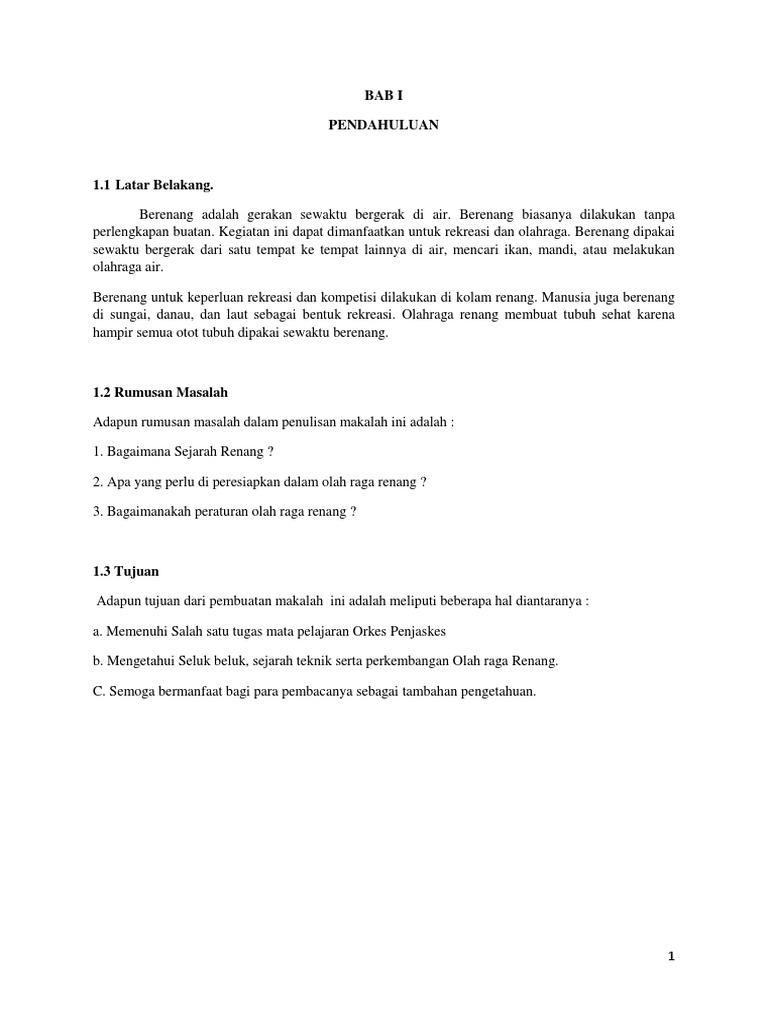 Semoga makalah ini dapet membatu pembaca untuk lebih mengenal olahraga renang. Bab i pendahuluan 11 latar belakang olahraga renang memang baik untuk perkembangan tubuh kesehatan.