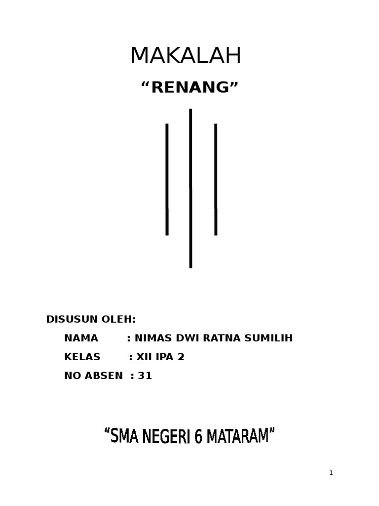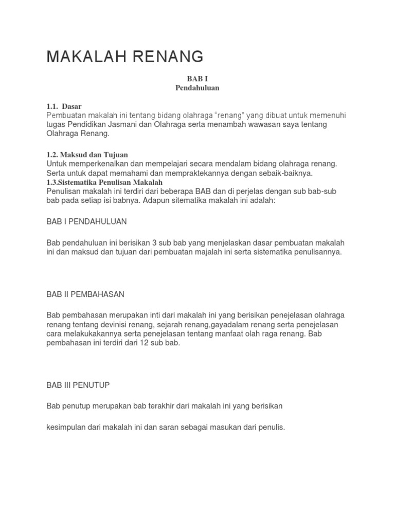 Contoh makalah tentang renang. Pembahasan berenang adalah gerakan sewaktu bergerak di air. Disini saya mengemukakan tentang sejarah renang macam macam gara renang manfaat renang dan masih banyak lagi uraian yang saya paparkan dalam makalah ini. Semua orang di dunia ini pasti sudah tidak asing lagi tentang apa itu olahraga renang. Contoh makalah renang sahabat budiman masih seputar contoh makalah kali admin akan sedikit berbagi contoh makalah tentang olahraga renang. Makalah ini disusun berdasarkan referensi dari buku informasi internet serta pemahaman penulis tentang renang khususnya pada gaya bebas. Gaya renang yang diperlombakan adalah gaya bebas gaya kupu kupu gaya punggung dan gaya dadaperenang yang memenangkan lomba renang adalah perenang yang menyelesaikan jarak lintasan tercepat.