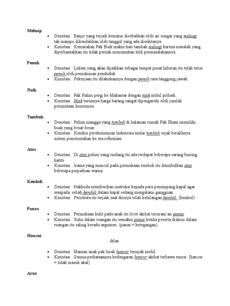 Posting pada bahasa indonesia ditag 10 contoh kalimat denotatif 10 contoh kalimat konotatif 10 contoh kata konotasi positif dan negatif 20 contoh kata denotasi apa itu kalimat denotasi arti ungkapan senjata makan tuan ciri ciri makna denotatif contoh diksi denotasi dan konotasi contoh kalimat benang merah contoh kalimat denotasi dan. Kata kata yang bermakna denotatif tepat digunakan dalam karya ilmiah sedangkan kata kata yang bermakna konotatif wajar digunakan dalam karya sastramakna denotatif adalah makna asli atau makna sebenarnya yang dimiliki oleh sebuah leksem.