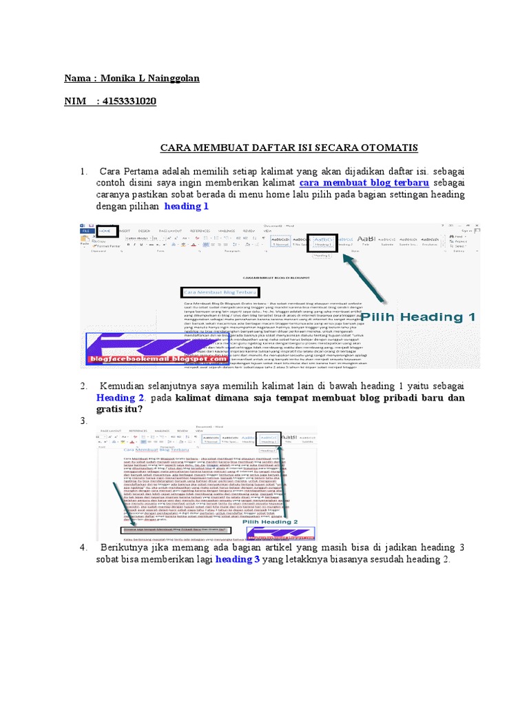 Heading untuk membuat daftar isi. Baca juga contoh daftar isi dan cara membuat daftar isi di libreoffice. Format heading 1 hanya digunakan untuk judul pada setiap bab sedangkan untuk subjudul bisa menggunakan heading 2 heading 3 dan selanjutnya. Dengan adanya daftar isi akan mempermudah pembaca untuk mengetahui isi setiap halaman dalam karya ilmiah. Berikut contoh daftar isi makalahanda pasti pernah mendengar istilah daftar isi. Seperti adanya daftar isi karena daftar isi menjadi bagian terpenting sebagai informasi mengenai isi pada setiap halaman hasil karya ilmiah.