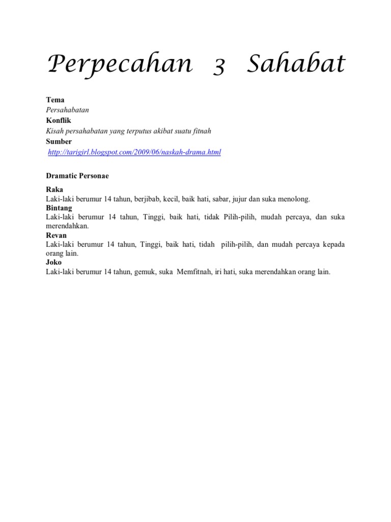 Alkisah terdapat 5 orang sahabat mereka adalah cintarendibryanbungadan gigi mereka sudah lama bersahabat sejak mereka kelas 1 sd masalahpun muncul ketika ada izamramosbiancadan elisha pengen tahu kelanjutan ceritanya langsung saja kita saksikan keluar. Contoh naskah drama musikal 18. Kumpulan contoh naskah drama pendek atau singkat tentang komedi persahabatan percintaan yang lucu menarik gokil tidak membosankan panjang yang dimainkan 4 5. Adi banu budi sita dini sinopsis drama suatu kumpulan contoh naskah drama teater 5 orang tentang persahabatan kejujuran mencontek sinopsis. Contoh naskah drama pendek kata drama berasal dari bahasa yunani yang yakni draomai yang mempunyai arti berlaku berbuat dan bertindak. Contoh naskah drama tentang persahabatan 15.
