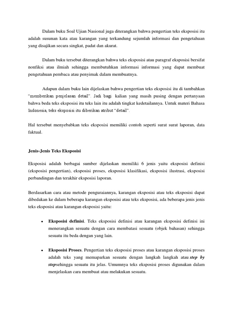 Paragraf ini bisa ita temukan di buku ensiklopedia pengetahuan umum ataupun ensiklopedia di media daring. Menurut pemahaman umum sebenarnya bekam dan hijamah ini berfungsi sebagai pembuang darah yang kotor dan rusak. Berikut ini adalah contoh paragraf definisi. Berikut contohcontoh paragraf eksposisi yang akan dijelaskan secara lengkap sebagai berikut. Teks eksposisi adalah sebuah paragraf atau karangan yang di dalamnya terdapat beberapa informasi yang isi dari paragraf tersebut di tulis dengan tujuan untuk menjelaskan atau memberikan sebuah pengertian dengan gaya penulisan yang singkat padat dan jelas.