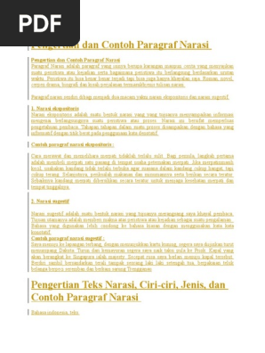 Contoh teks narasi pada kesempatan kali ini kita akan membahas mengenai pengertian teks narasi ciri ciri teks narasi jenis jenis teks narasi dan contoh teks narasi pendeksebuah bacaan atau disebut teks yang berupa runtutan suatu kejadian berdasarkan urutan waktu dikenal sebagai paragraf narasi atau teks narasi. Paragraf narasi adalah paragraf yang menceritakan suatu peristiwa atau kejadian secara runtut. Bentuk teks naratif ada yang pendek dan adapula yang panjang bahkan sangat panjang seperti novel atau roman. Pada saat itu di rumah tidak ada orang ayah dan ibu sedang pergi keluar kota. Di suatu hari aku melihat sebuah bunga yang cantik di depan halamanku. Contoh paragraf narasi singkat.