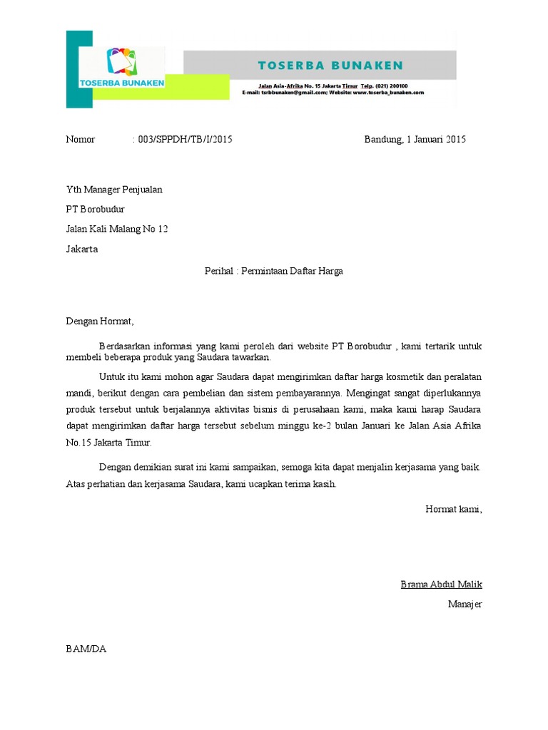 Contoh penawaran harga barang. Surat penawaran seringkali berbentuk formal dan dengan jelas juga mencantumkan rincian harga juga barang yang ditawarkan akan dijual. Pada artikel kali ini kita akan membahas mengenai contoh surat penawaran barang dan harga lengkapsebagai informasi surat penawaran barang dan hargaadalah surat yang dibuat dan ditujukan kepada suatu perusahaan yang tujuannya yaitu untuk menawarkan suatu barang atau produk ke perusahaan tersebut beserta detail harganya. Adapun surat yang dipergunakan oleh suatu perusahaan atau instansi merupakan jenis jenis surat resmi dimana penulisannya harus sesuai dengan kaidah kaidah penulisan surat resmi dan penggunaan bahasa yang baik serta sesuai dengan. 15 contoh surat penawaran harga barang jasa dan pekerjaan dalam menjalankan sebuah perusahaan tentu tidak akan bisa terlepas dari urusan surat menyurat. Jalan sesetan baru km 10 denpasar selatan email. Selamat membaca sahabat.