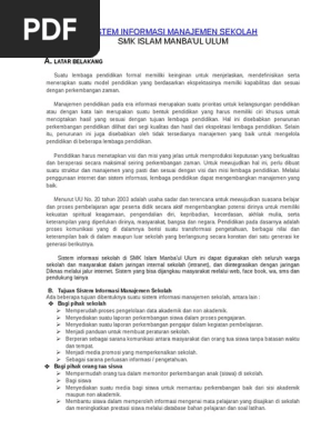 Erp adalah sebuah aplikasi sistem manajemen bisnis yang memudahkan pengelolaan bisnis secara terintegrasi. Sistem ini memiliki konsep untuk merencanakan dan mengelola sumber daya perusahaan meliputi manusia dana mesin suku cadang material waktu dan kapasitas yang berpengaruh luas mulai dari manajemen paling atas hingga operasional di sebuah perusahaan. Bahwa untuk kelancaran pengelolaan sistem informasi manajemen sekolah sekolah dasar negeri tambaharjo tahun pelajaran 20132014 maka sangat perlu membentuk tim pengelola sim. Makalah ini direncanakan untuk menyediakan informasi bagi setiap lembaga pendidikan mengenai konsep sistem informasi manajemen sekolah. Manajemen peserta didik perencanaan pengorganisasian pengerahan pengawasan perencanaan. Sistem informasi administrasi dan pengelolaan keuangan sekolah.