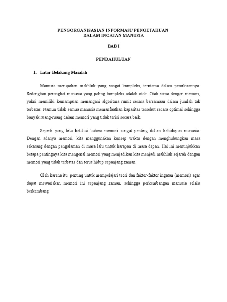 Contoh pengorganisasian informasi pengetahuan dalam ingatan manusia. Pengorganisasian informasipengetahuan dalam ingatan manusia a. B erikan 5 contoh aspek yang membutuhkan pengorganisasian informasi. Informasi yang diterima melalui alat indera akan. Pengorganisasian informasi pengetahuan dalam ingatan manusia. Informasi informasi tersebutlah yang dibutuhkan oleh manusia dalam kehidupan sehari hari sebagai pembantu mereka misalkan dalam pekerjaan maupun urusan lainnya. Bermacam macam jenis ingatan juga ada dalam otak manusia.