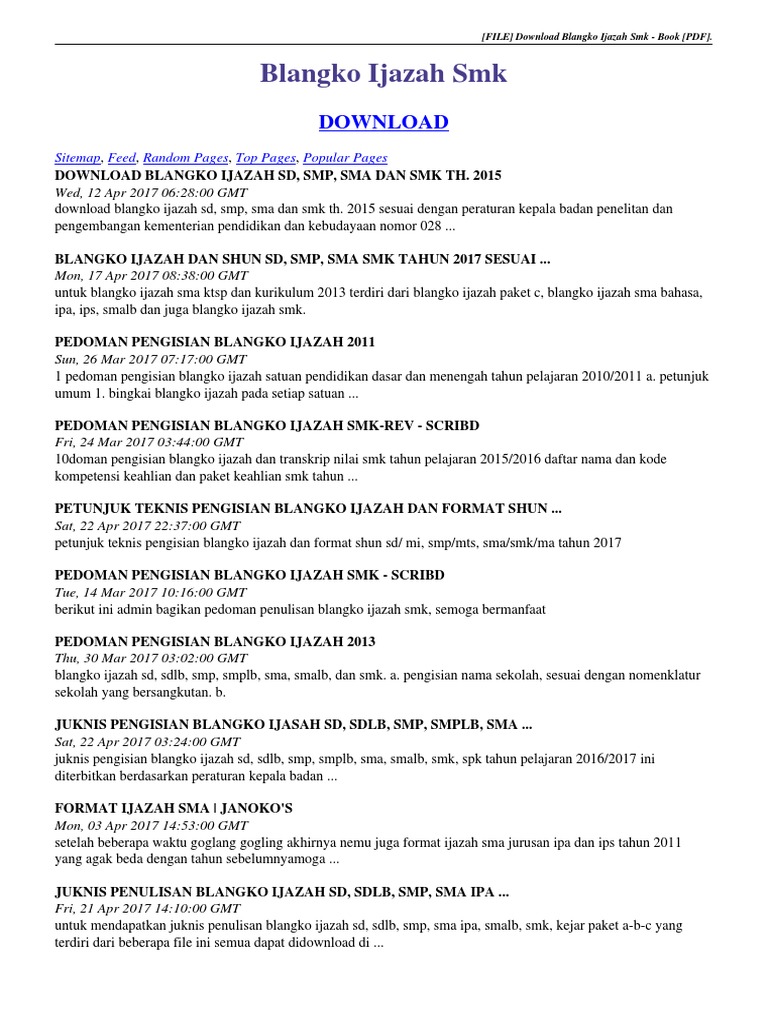 016hep2018 tentang bentuk spesifikasi dan pengisian blanko ijazah pada satuan pendidikan dasar dan pendidikan menengah tahun pelajaran 20172018. Download contoh blangko ijazah tahun 2020 untuk sd smp sma smk. Ijazah untuk sekolah yang menggunakan kurikulum 2006 ijazah untuk sekolah yang menggunakan 2013 dan ijazah untuk satuan pendidikan kerjasama spk. Download juknis penulisan ijazah tahun ajaran 20172018 pdf rekan rekan semua kali ini admin akan membagikan informasi mengenai juknis penulisan ijazah sd smp smasmk sdlbsmplb smalb spk dan paket a b c tahun ajaran 20172018pada juknis penulisan ijazah 20172018 tersebut berformat pdf rekan rekan semua bisa download juknis penulisan ijazah tersebut pada link yang sudah admin. Contoh file download rpp kkm panduan rpp program tahunan program semester dan sdkd dan semua mata pelajaran untuk smp mts berikut ini adalah kumpulan dari berbagi sumber tentang contoh sk penulisan ijazah smp yang bisa gunakan untuk pendidikan dan gururpp kurtilas dan diunduh secara gratis dengan menekan tombol download biru. 018hep2017 petunjuk khusus pengisian halaman muka 1.