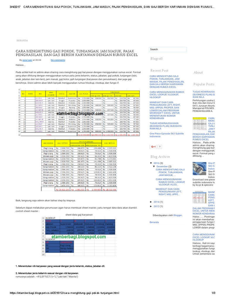 Langkah langkah membuatnya sebagai berikut. Contoh file excel menghitung gaji karyawan dibawah ini saya sertakan contoh file penghtungan gaji karyawan yang telah kita bahas. Seperti contoh dibawah ini dengan nama sheet data karyawan. Sesuai dengan peraturan direktur jenderal pajak nomor per 32pj2015 tentang pajak penghasilan pasal 21 pengertian dari pph pasal 21 adalah pajak atas penghasilan berupa gaji upah honorarium tunjangan dan pembayaran lain dengan nama dan dalam bentuk apapun yang. Untuk dapat menghitung jumlah penghasilan yang diterima karyawan harus dicari beberapa hal mulai dari gaji pokok uang lembur tunjangan transport penggantian pengobatan jika ada potongan bpjs potongan pph pasal 21.