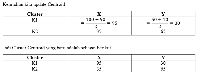 K means merupakan salah satu metode clustering non hirarki yang berusaha mempartisi data yang ada ke dalam bentuk satu atau lebih cluster. Demikian untuk materi algoritma k means clustering dan contoh soal semota materi kali ini memberikan ilmu lebih bagi sobat dan lebih mengerti mengenai algoritma k means. Selamat datang di channel anak itlabs. Berikut merupakan data yang digunakan untuk melakukan percobaan perhitungan manual. Metode ini mempartisi data ke dalam cluster sehingga data yang memiliki karakteristik yang sama dikelompokkan ke dalam satu cluster yang sama dan data yang mempunyai karateristik yang berbeda di kelompokan ke dalam cluster yang lain. Contoh kasus dan perhitungan manual algoritma k means.