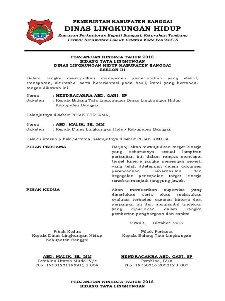 Inspektur pembantu wilayah iv drs. Format perjanjian kinerja secara umum format perjanjian kinerja pk terdiri atas 2 dua bagian yaitu pernyataan perjanjian kinerja dan lampiran perjanjian kinerja. Perjanjian kinerja eselon ii. Surat keputusan sk matriks rencana aksi. Kinerja utama eselon ii dan indikator kinerja lain yang relevan. 19630107 198903 1 017 pernyataan perjanjian kinerja.