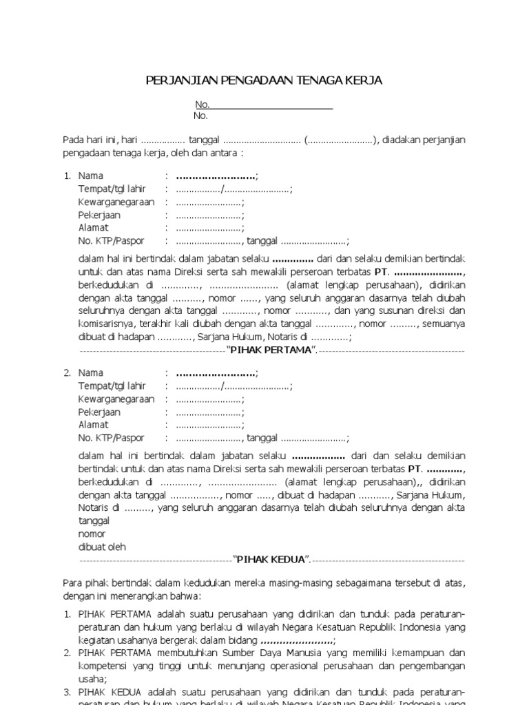 Contoh perjanjian kontrak pemborongan penyedia jasa pekerja outsourcing perjanjian kerja sama. 42 pihak kedua melakukan kesalahan berat per. Bisa juga antar perusahaan dengan pihak 1 perusahaan anda dan pihak 2 perusahaan lain. Per 02men1993 bab iv psl 16 dan 17.