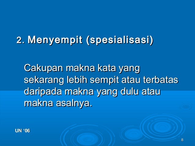 Contoh perubahan makna kata. Salah satu contoh perubahan makna kata adalah meluas dan menyempitsekarang kita akan membahas tentang meluas dan menyempit. Perluasan makna generalisasi generalisasi adalah suatu proses perubahan makna kata dari yang khusus ke yang lebih umum atau dari yang lebih sempit ke yang lebih luas. Perubahan mana kata sastra dan makna tulisan sampai pada makna karya imaginatif adalah salah satu contoh perkembangan bidang keilmuan. Kata ulang adalah bentuk kata yang diperoleh melalui proses reduplikasi atau pengulangan baik secara keseluruhan sebagian maupun perubahan. Kawin gerombolan oknum dan perempuan terasa memiliki konotasi menurun atau negatif. Pandangan pandangan baru atau teori baru mengenai sastra menyebabkan makna kata sastra itu berubah.