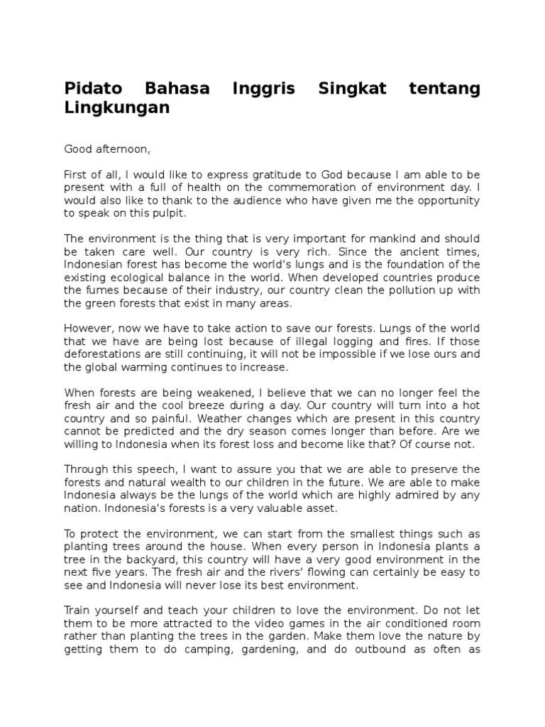 Itu karena saat ini lingkungan yang ada disekitar kita begitu memprihatinkan. Contoh pidato bahasa inggris singkat tentang lingkungan dan artinya lingkungan adalah salah satu topik yang paling sering dipakai saat seseorang berpidato. Contoh pidato tentang uks. 903 am herlambang priyo trapsilo no comments pidato lingkungan hidup. Contoh pidato bahasa inggris tentang lingkungan. Contoh pidato tentang narkoba.
