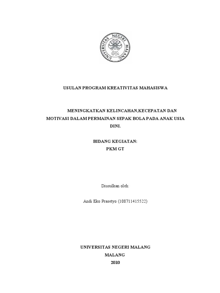 Buku antalogi akan didesain semenarik mungkin yaitu dengan tulisan yang memikat dan berwarna memakai bahasa yang dipahami siswa sd dan akan mencamtumkan gambar sebagai penguatnya. Otomatisasi pengambilan size visibility rich files dan scholar dari website sebagai alat ukur indikator. Eko fujianto 3063224007582006 humaidillah kurniadi w 9063224003922006 desy hosenainy 4083224102632008 universitas negeri malang malang ii 2010 halaman pengesahan usulan pkm gt 1. Proposal di bawah ini adalah proposal pkm tahun tahun sebelumnya hanya untuk referensi secara substansi isi kerangka jangan dicontoh karena menggunakan panduan lamalihat di menu download untuk pedoman dan kerangka pkm yang terbaru. Suatu pendidikan sebagai proses untuk mendewasakan mereka seperti dalam uud 1945 pasal 31 ayat 1 sampai 5 yang mengatur tentang hak untuk mendapat pendidikan yang layak. Beasiswa belajar berprestasi dan bisnis.