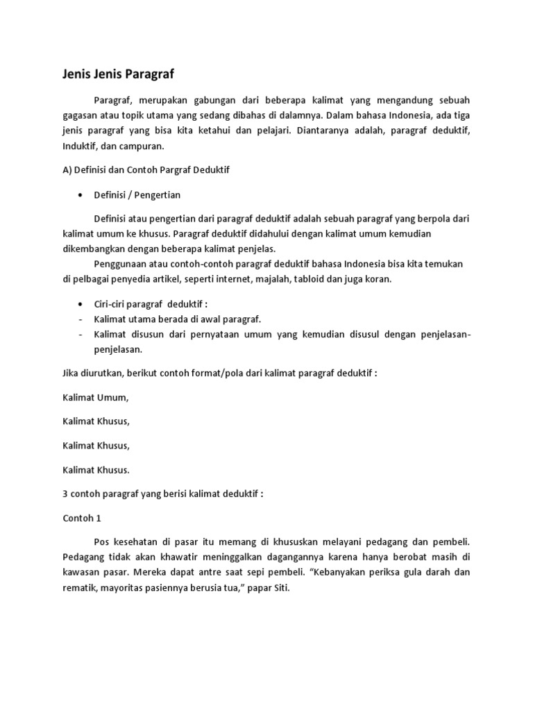 Contoh pola umum khusus. Ia tidak akan segan memberi pertolongan pada warga yang membutuhkan. Salah satunya kita dapat memanfaatkannya secara maksimal. Sembilan hektar di antaranya dikategorikan terkena serangan berat karena yang bisa diselamatkan hanya sekitar 20 persen. Terdapat beberapa pilihan varian dendeng dalam masakan khas padang dimana salah satunya ialah dendeng balado. Paragraf ini mempunyai pola pengembangan umum khusus. Bersama teman komunitasnya rina sering mengadakan acara sosial dan penggalangan dana untuk membantu korban bencana dan pasien kanker yang membutuhkan uluran dana.