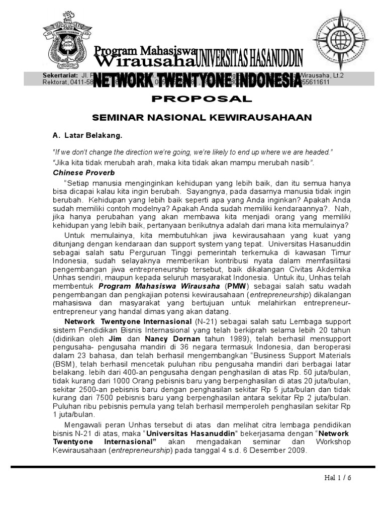 Memberikan bonus lebih kepada pemesan untuk acara hajatan walimahan seminar. Untuk memenuhi saah satu tugas kuiah semoga bermanfaat dan menjadi referensi bagi sahabat yang sedang membutuhnya. Contoh proposal usaha kewirausahaan bisnis plan cara membuat proposal usaha 4 min read. Undang dalam dunia pendidikan termasuk memperbaharui kurikulum setiap tahunnya maka dengan hal demikian seminar ini kami buat untuk membantu pemerintah meningkatkan mutu pendidikan dengan mensosialisasikan kurikulum tahun 2013. Demikian proposal ini kami buat semoga proposal ini dapat memberikan banyak gambaran mengenai kerangka kegiatan dan visi mengenai pelaksanaan kegiatan seminar kewirausahaan entrepreneurs is the way of life kewirausahaan adalah jalan kehidupan yang diadakan oleh senat mahasiswa fakultas ekonomi universitas kanjuruhan malang periode 20102011. Contoh proposal seminar terlengkap proposal seminar pendidikan.
