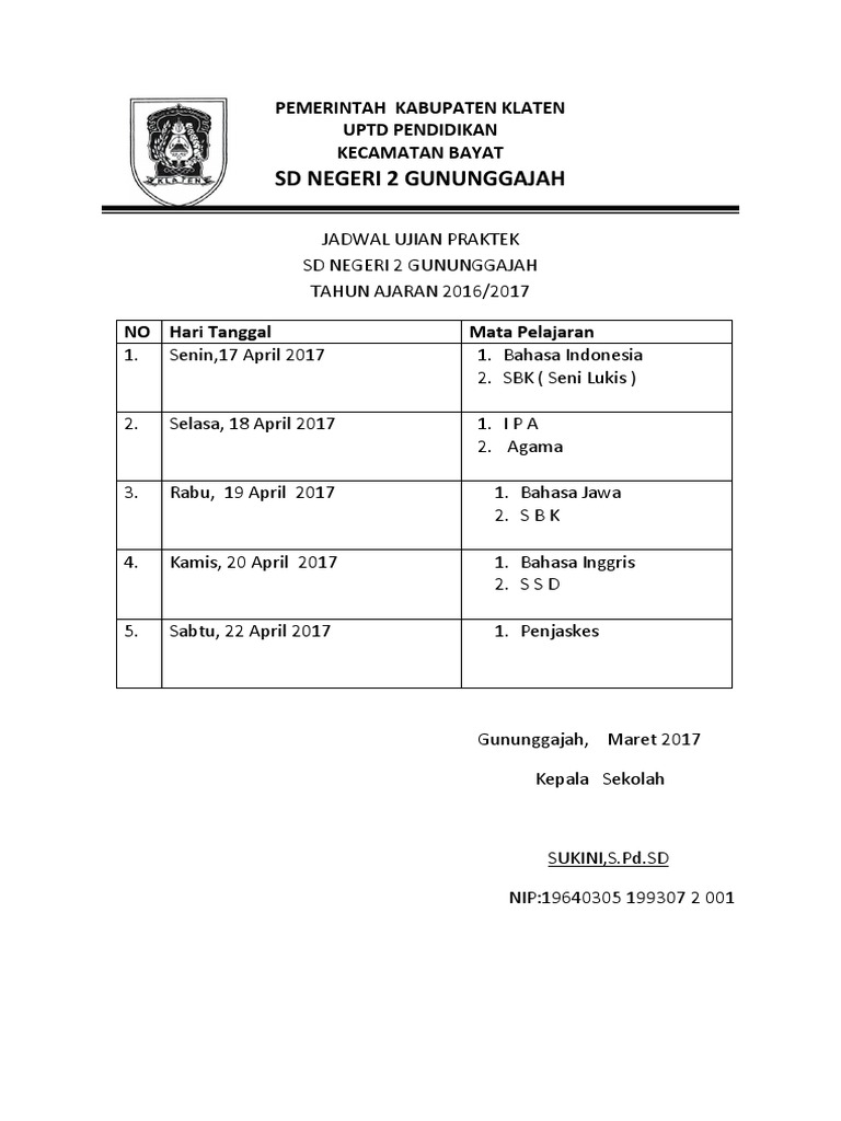 Oleh admin diposting pada 31 agustus 2017 31 agustus 2017. Naskah soal ujian akhir sekolah uas praktek tahun pelajaran 2011 2012 uptd pendidikan kecamatan leuwimunding sd negeri. Yang bisa digunakan untuk melengkapi administarsi guru yang dapat di unduh secara gratis dengan menekan tombol download. Vi ii hari tanggal. Jadwal ujian praktek sesuai dengan surat edaran korwil akan dimulai tanggal 08 april 2019 tepatnya minggu depan. Contoh program ujian praktek sd lengkap tahun 2016 portal informasi contoh program ujian praktek sd lengkap tahun 2016.