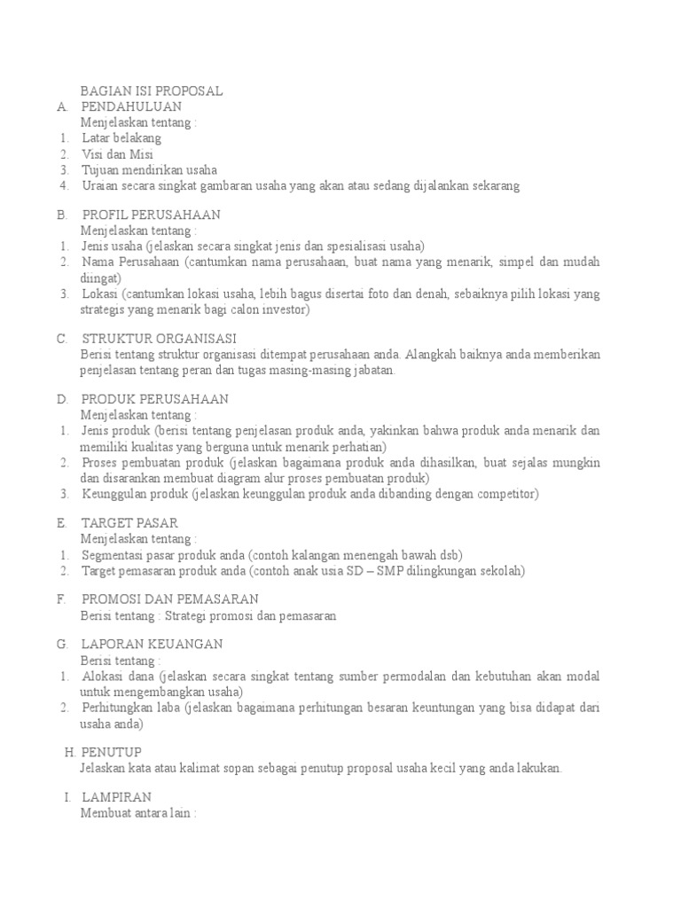 Contoh proposal usaha singkat. 1 contoh proposal usaha. Contoh proposal kegiatan sekolah usaha penelitian pengajuan bantuan dana bakti sosial yang baik dan benar. Proposal ini perlu dibuat saat anda hendak melakukan kegiatan atau penelitian tertentu. Cara membuat proposal usaha sebenarnya cukup mudah. Inti dari contoh proposal usaha kecil di atas adalah anda harus menekankan kapan anda berdiri dimana anda berada apa yang anda punya dan bisnis seperti apa yang akan anda jalankan secara singkat kepada investor bisnis anda. Karena produk saya adalah ayam fillet yang di goreng berbentuk stick.