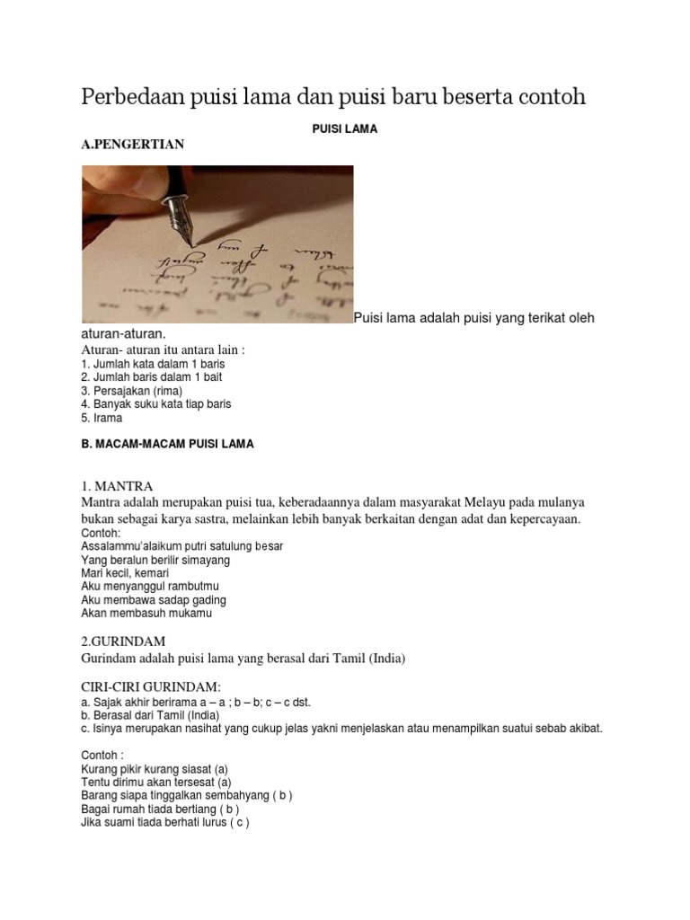 Untuk itu silahkan kamu simak baik baik penjelasan berikut ini. Menurut zamannya puisi dibedakan atas puisi lama dan puisi baru.