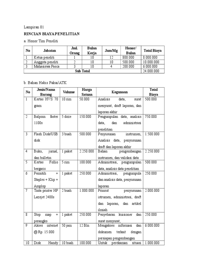 Oleh karena itu mari ikuti contoh proposal penelitian ini. Di postingan contoh rab rencana anggaran biaya. Lap top tape recorder dan lain lain. Biaya bahan dan alat 1. 10 klip kertas at 1000 4. 13 map plastik at 4200 5.