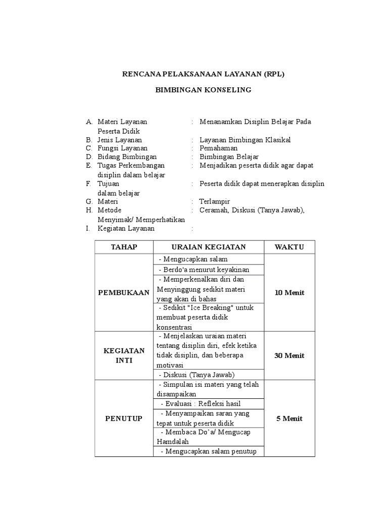 Rpl bk rpl rencana pelaksanaan pembelajaran layanan bimbingan dan konseling layanan konseling kelompok i. Topik tugas meningkatkan motivasi. Pemerintah daerah provinsi jawa barat. Contoh rpl rencana pelaksanaan layanan perangkat bk bimbingan dan konseling. 2017 2018 semester genap c. Bidang studi keahlian bisnis manajemen teknologi informasi dan kesehatan.