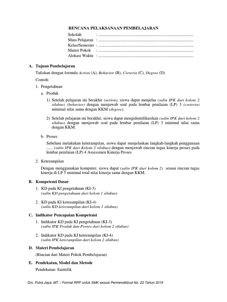 Identitas mata pelajaran. Contoh program kerja wali kelas tahun pelajaran 2019 2020. Identitas sekolah yaitu nama satuan pendidikan. Contoh rpp sd permendikbud no 22 tahun 2016 pdf. Pengertian lengkap rpp disertai contoh permendikbud no 22 tahun 2016 dapodik bangkalan info ptk rpp comment permendikbud no 22 tahun 2016 tentang standar proses pendidikan dasar dan menengah menjelaskan bahwa rencana pelaksanaan pembelajaran rpp adalah rencana kegiatan pembelajaran tatap muka untuk satu pertemuan atau lebih. Yang harus dicapai peserta didik untuk suatu mata pelajaran pada masing masing satuan pendidikan yang mengacu pada ki permendikbud no 24 tahun 2016.