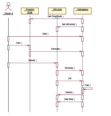 Contoh class diagram class diagram adalah bagian dari uml unified modeling language. Respon sistem akan meverifikasi username dan password kondisi benar akan tampil menu utama jika salah maka akan masuk ke login. Inilah contoh dari sequence diagram. Sequence diagram adalah salah satu dari diagram diagram yang ada pada uml sequence diagram ini adalah diagram yang menggambarkan kolaborasi dinamis antara sejumlah object. Sequence diagram yaitu salah satu jenis diagram pada uml yang menjelaskan interaksi objek yang berdasarkan urutan waktu sequence diagram juga dapat menggambarkan urutan atau tahapan yang harus dilakukan untuk dapat menghasilkan sesuatu seperti pada use case diagram.