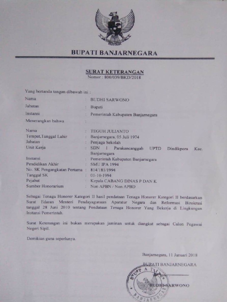 Contoh sk bupati untuk tenaga honorer. Suarat keputusan sk pengangkatan dari bupatiwalikota bagi guru honorer sangat penting karena merupakan sebagai salah satu syarat mendapatkan nomor unik pendidik dan tenaga kependidikan nuptkselain itu jika telah mendapat sk bupatiwalikota maka gajinya bisa dari apbd bukan hanya dari dana bantuan operasional sekolah bos. Kepala dinas pendidikan dan kebudayaan kabupaten muarojambi ulil amri menjelaskan guru honorer yang. Contoh sk bupati untuk guru honorer yang bisa anda unduh secara gratis dengan menekan tombol download yang ada pada tautan dibawah ini. Contoh surat permohonan sk bupatidocx unduh file. Tribunjambicom sengeti guru honorer di kabupaten muarojambi tidak lagi pusing dengan nomor unik pendidik dan tenaga kependidikan nuptk. Surat keputusan bupati ini adalah untuk pengangkatan guru pendidik dan tenaga administrasi ptk sekolah.