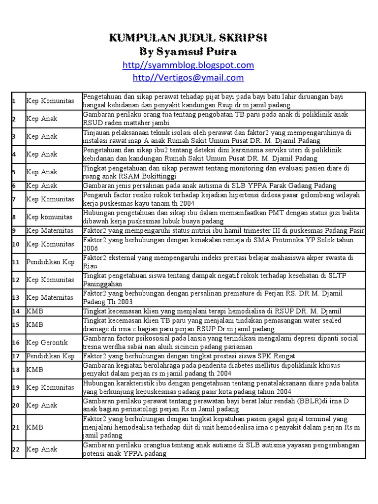 Contoh skripsi keperawatan pdf. Dengan berbagai studi kasus yang beragam serta skripsi skripsi keperawatan tersebut telah diujikan di berbagai universitas ternama di indonesia sehingga anda tidak perlu sangsi atau ragu dalam menggunakannya sebagai referensi. Skripsi keperawatan mencakup berbagai hal yang menyangkut manajemen keperawatan seperti kinerja pengajar di fakultas keperawatan hubungan antara stres kerja dan motivasi terhadap kinerja pengajar di fakultas keperawatan gaya kepemimpinan dan faktor faktor yang mempengaruhi kinerja serta masih banyak lagi. Klik di sini untuk informasi file lengkap contoh kritik skripsi pdf selengkapnya. Jurnal skripsi keperawatan pdf. Berikut ini adalah download jurnal gratis yang merupakan kumpulan file dari berbagi sumber tentang contoh skripsi keperawatan pdf yang bisa bapakibu gunakan dan diunduh secara gratis dengan menekan tombol download biru dibawah ini. Contoh skripsi keperawatankumpulan skripsi lengkap judul skripsi lengkap contoh skripsi download skripsi daftar judul skripsi koleksi skripsi skripsi gratis.