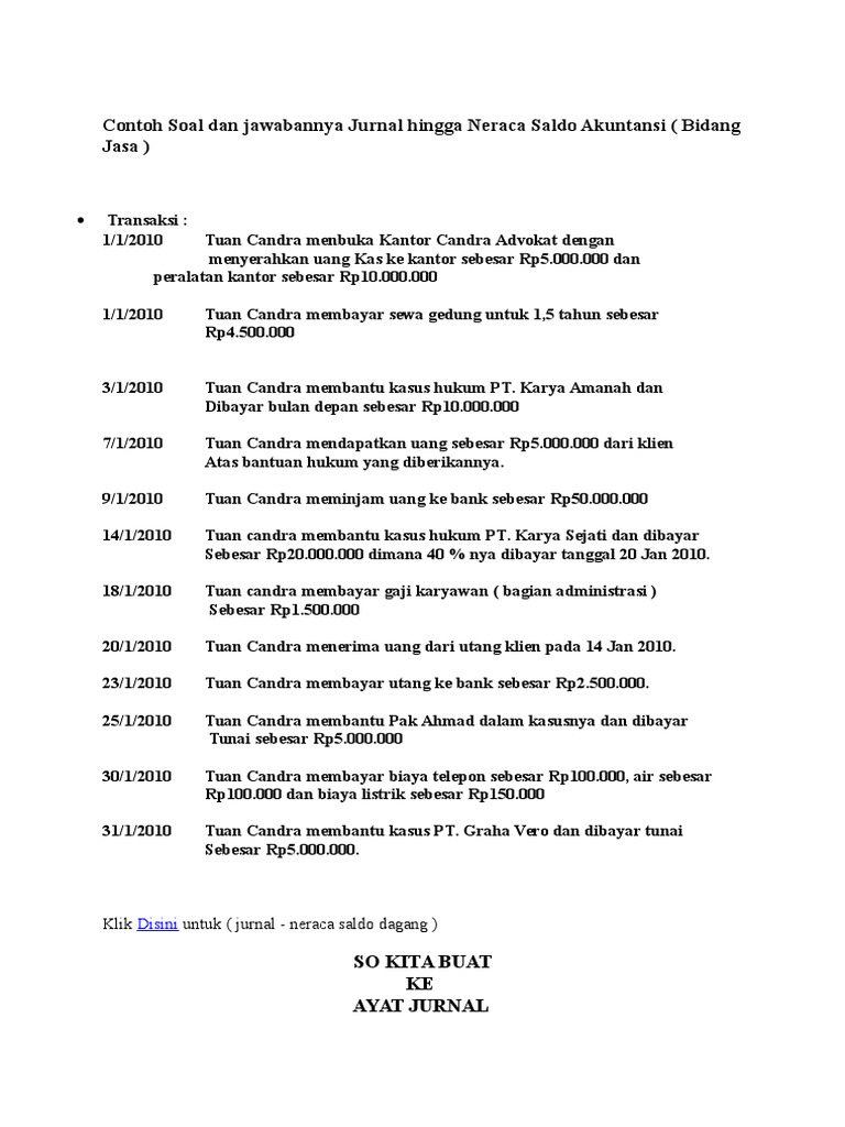 Minta soal dan pembahasannya dong untum perusahaan dagang mulai dri jurnal umum buku besar neraca saldo dll kalo bisa. Pada tanggal 31 juli staf kja sabrina menemukan bahwa jasa pembukuan senilai rp2600000 telah diselesaikan tetapi faktur atas jasa tersebut belum diterbitkan.