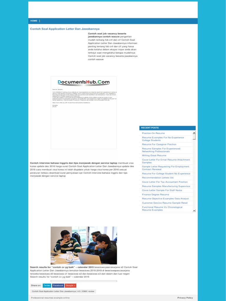Contoh soal application letter dan jawabannya. Kumpulan soal dan kunci jawaban tentang letter by mr min posted on september 27 2015. If i come to indonesia. Soal application letter dan jawabannya berikut ini adalah kisi kisi soal pretest ppg 2018 yang merupakan kumpulan file dari berbagi sumber kisi kisippg tentang soal application letter dan jawabannya yang bisa bapakibu gunakan dan diunduh secara gratis dengan menekan tombol download biru dibawah ini. Dalam artikel ini saya akan membagikan 10 contoh soal letter text dan kunci jawaban terbaru untuk pelajar sekolah menengah pertama kelas 7 8 atau 9 smpmts. Admin blog dapatkan contoh 2019 juga mengumpulkan gambar gambar lainnya terkait contoh soal application letter pilihan ganda beserta jawabannya dibawah ini. Contoh soal 1.