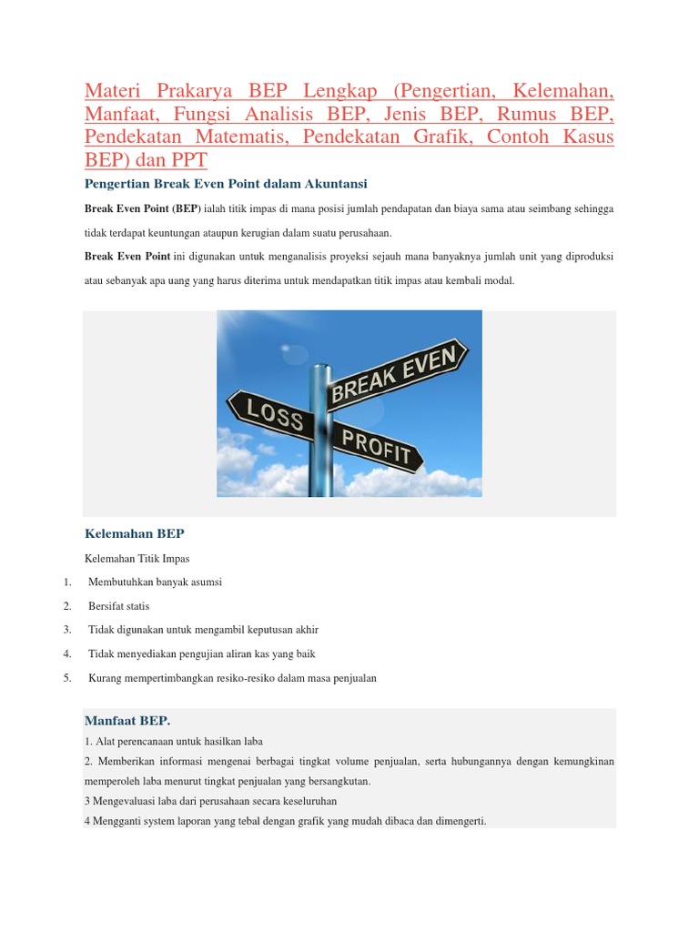 Definisi break even point bep rumus menghitung bep balik modal. Tulisan ini terbagi menjadi 5 bagian yaitu. Rumuscoid pada kesempatan kali ini kita akan membahas tentang rumus bep dan pada pembahasan sebelumnya kita telah membahas soal tulisan terbaru. Pengertian break even point komponen dan contoh soal cara menghitung break even point lengkap dalam menilai keberhasilan suatu manajemen perusahaan diukur dengan pencapaian target penjualan hal tersebut berarti terjadinya laba yang maksimal dan untuk mencapai keuntungan maksimum tersebut dipengaruhi oleh tiga faktor pendukung diantaranya seperti biaya produksi harga jual dan banyaknya. Itulah contoh soal break even point dan grafiknya yang dapat admin kumpulkan. Pengertian rumus dan cara menghitung break even point dalam sebuah usaha atau bisnis dipakai suatu ukuran umum dalam menentukan dan menilai keberhasilan manajemen usaha dalam mencapai target penjualan sehingga terjadi keuntungan atau laba maksimal.